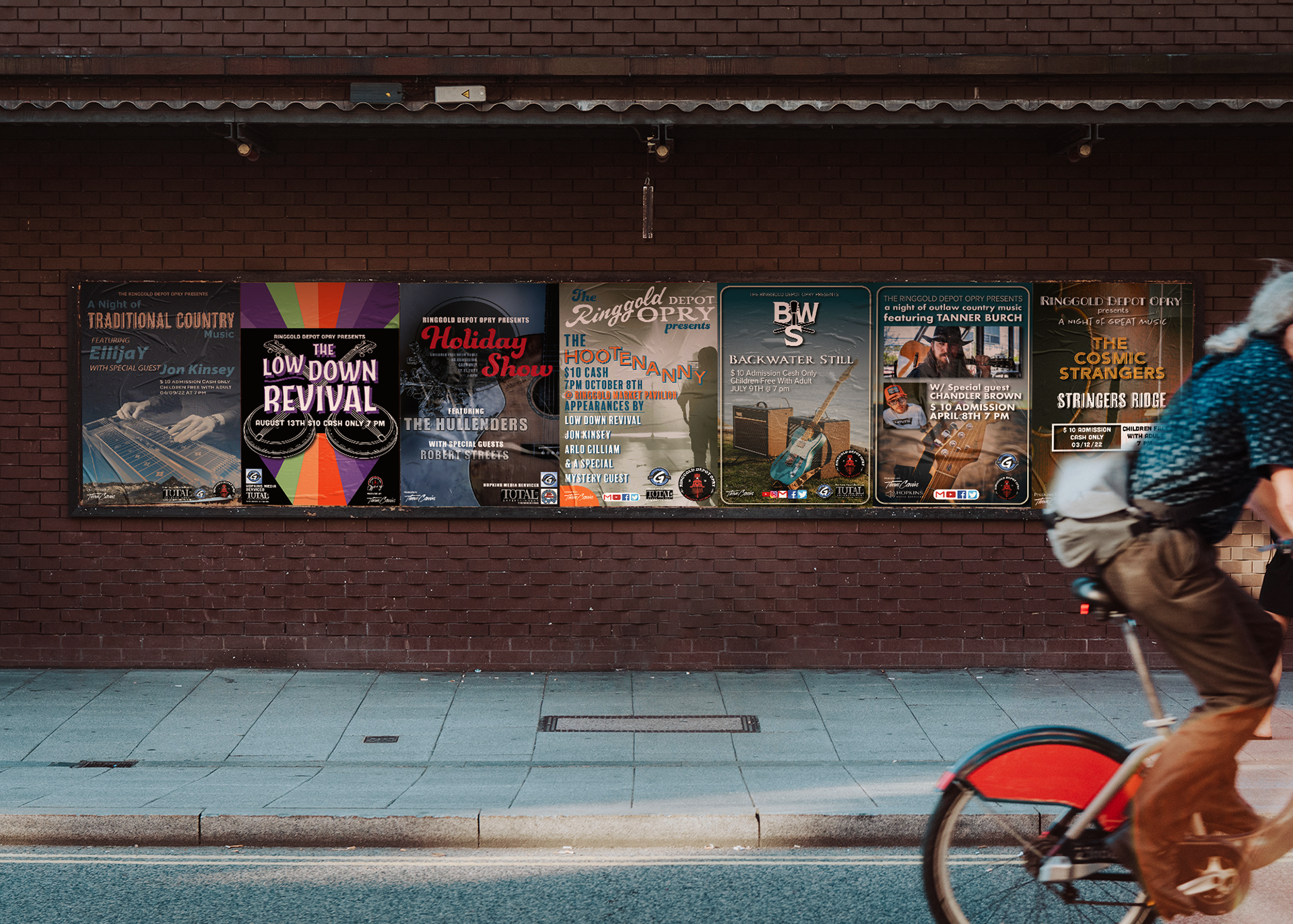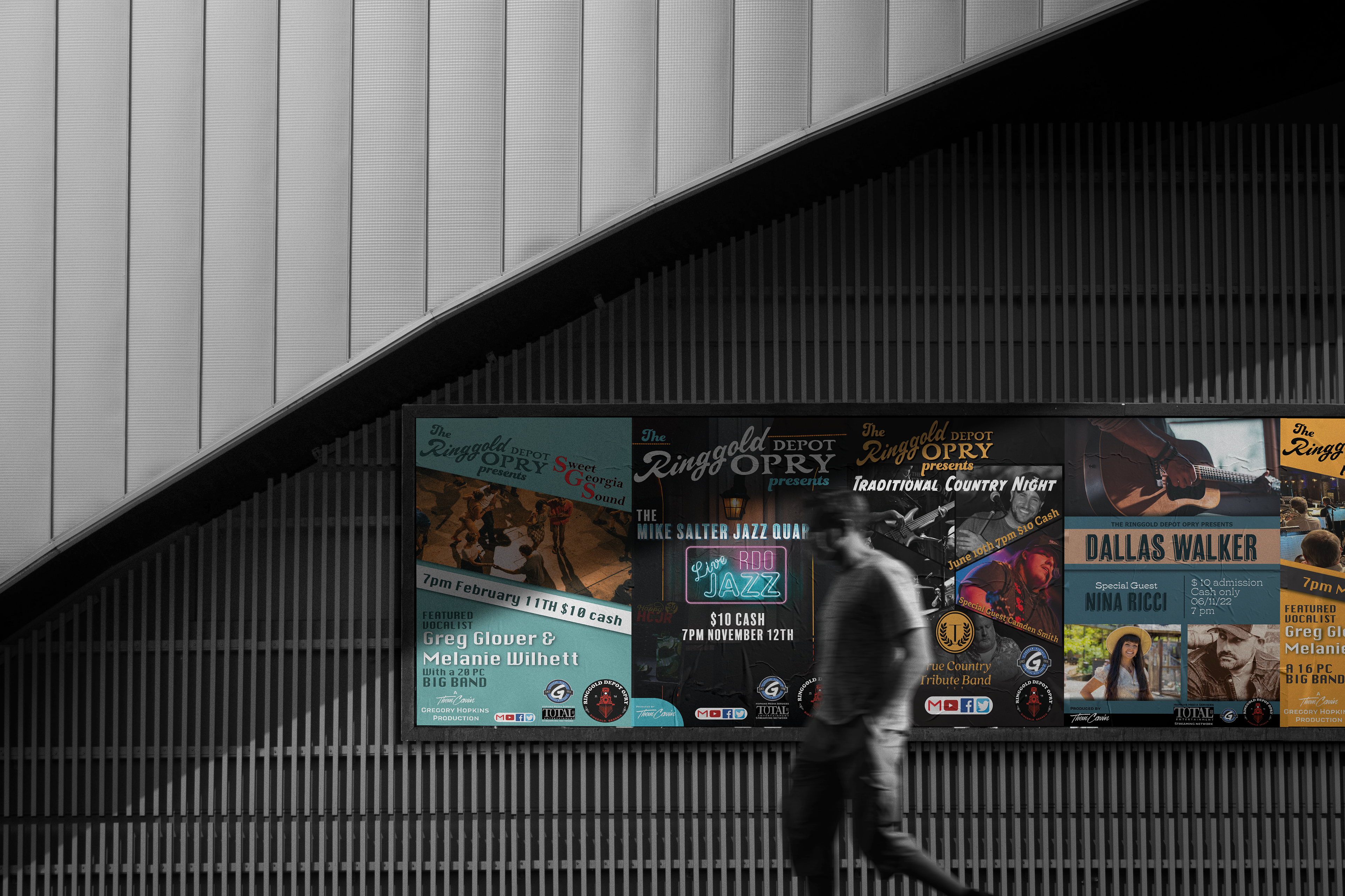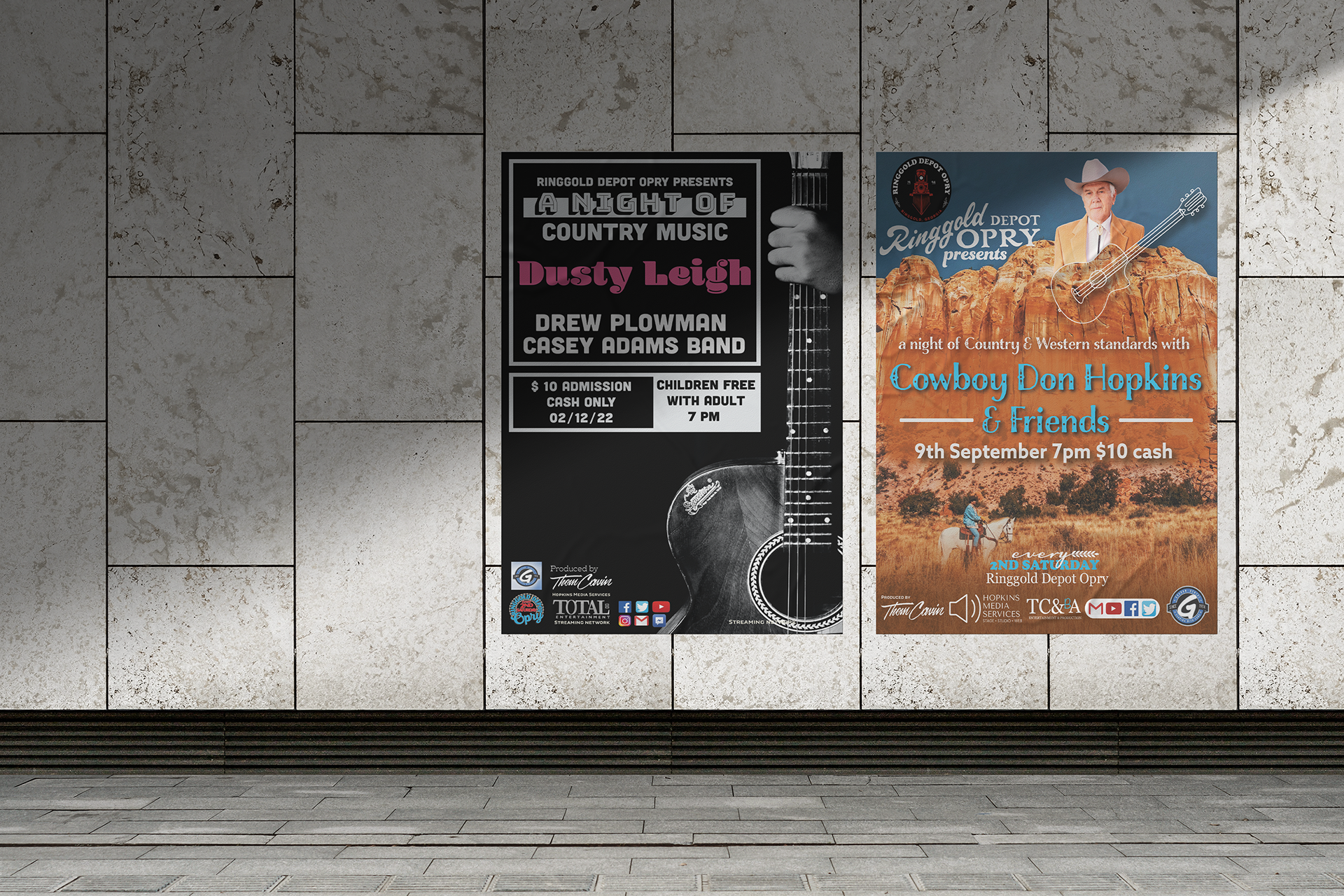 I have been working with the Ringgold Depot Opry on their Posters for music events since 2021. The client wants Eye-catching Typography with style to match the artists that change each month.